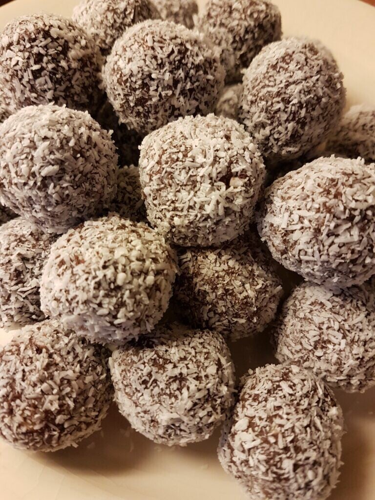 - Rol de balletjes door de geraspte kokos voor een mooi laagje.